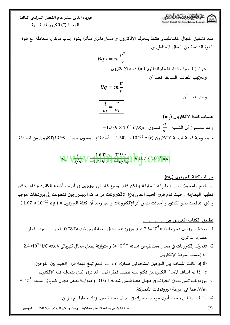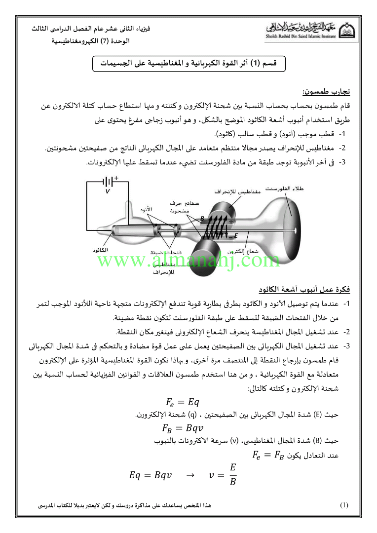 رابط تحميل وعرض ( اوراق عمل الوحدة7 الكهرومغناطيسية ) | |||
