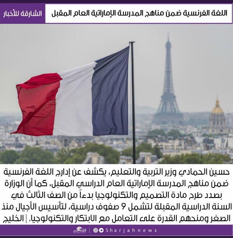 | اللغة الفرنسية ضمن مناهج المدرسة الإماراتية العام المقبل | ||