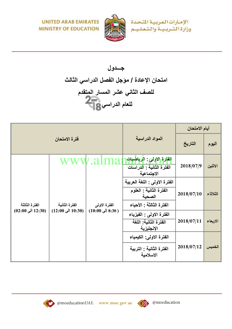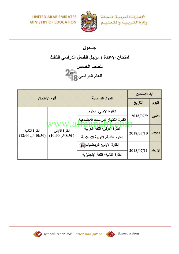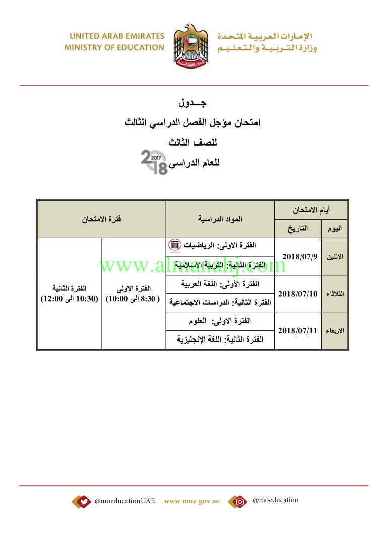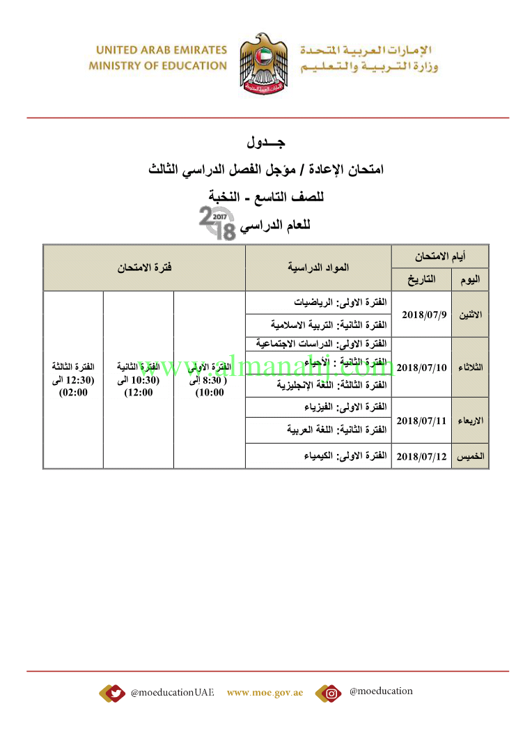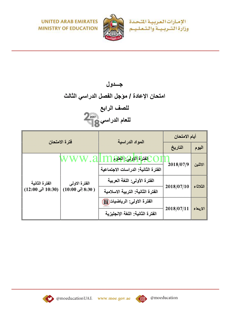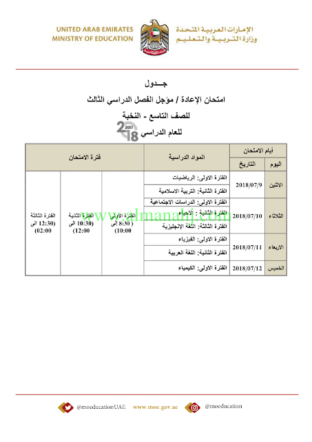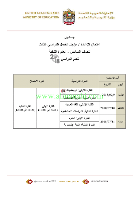 أصدرت وزارة التربية والتعليم في الإمارات العربية المتحدة جداول الامتحانات لجميع الصفوف http://aefiles.website/do.php?id=2561">http://aefiles.website/do.php?id=2561
