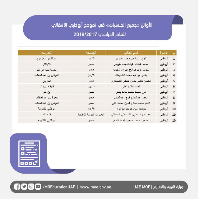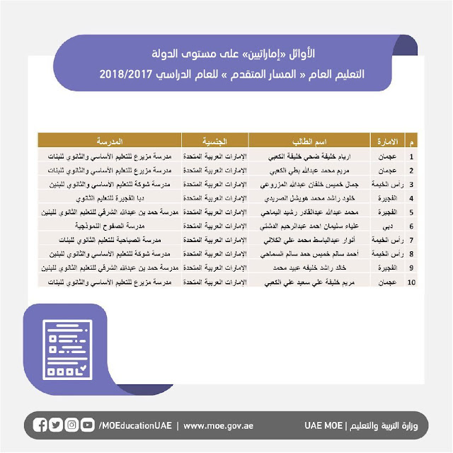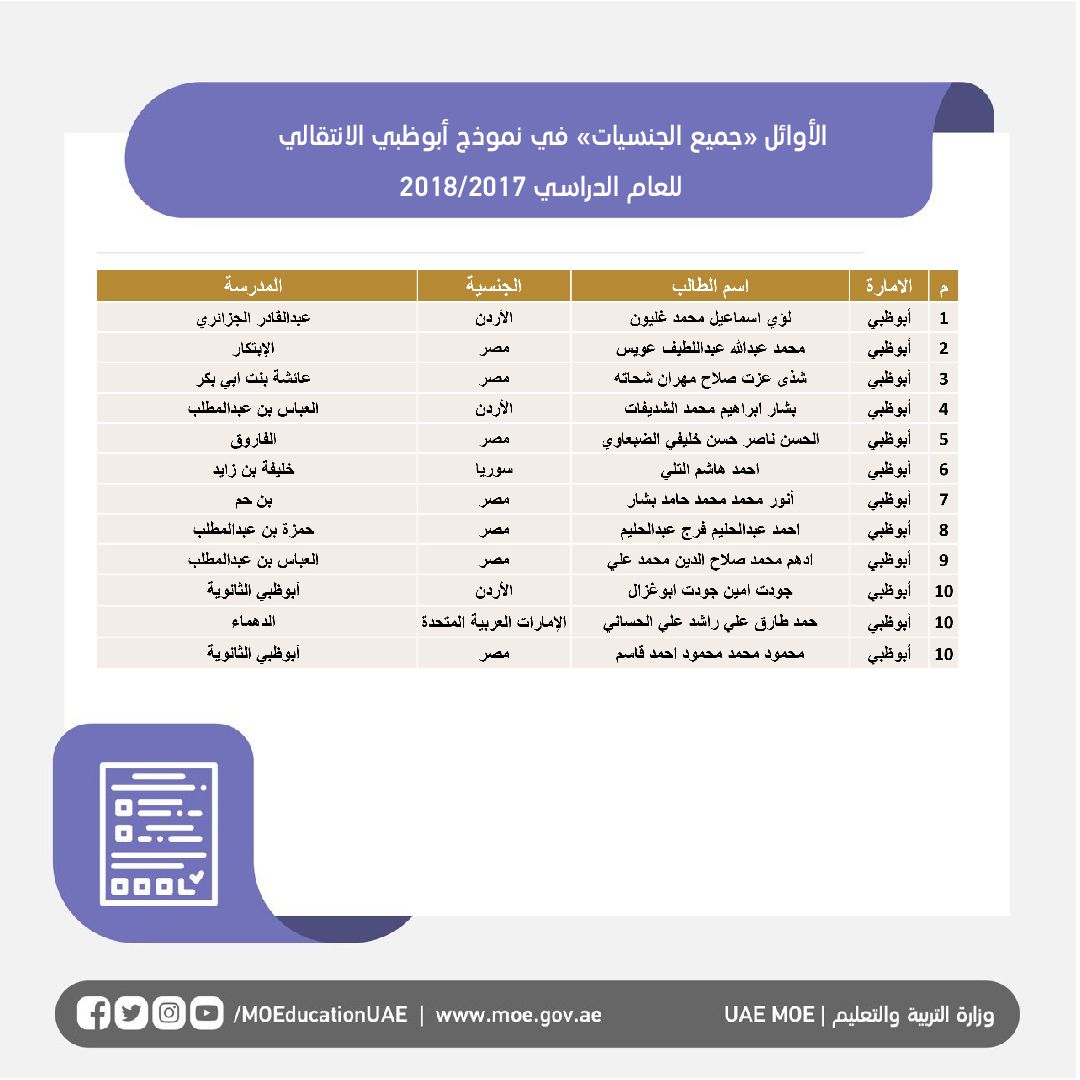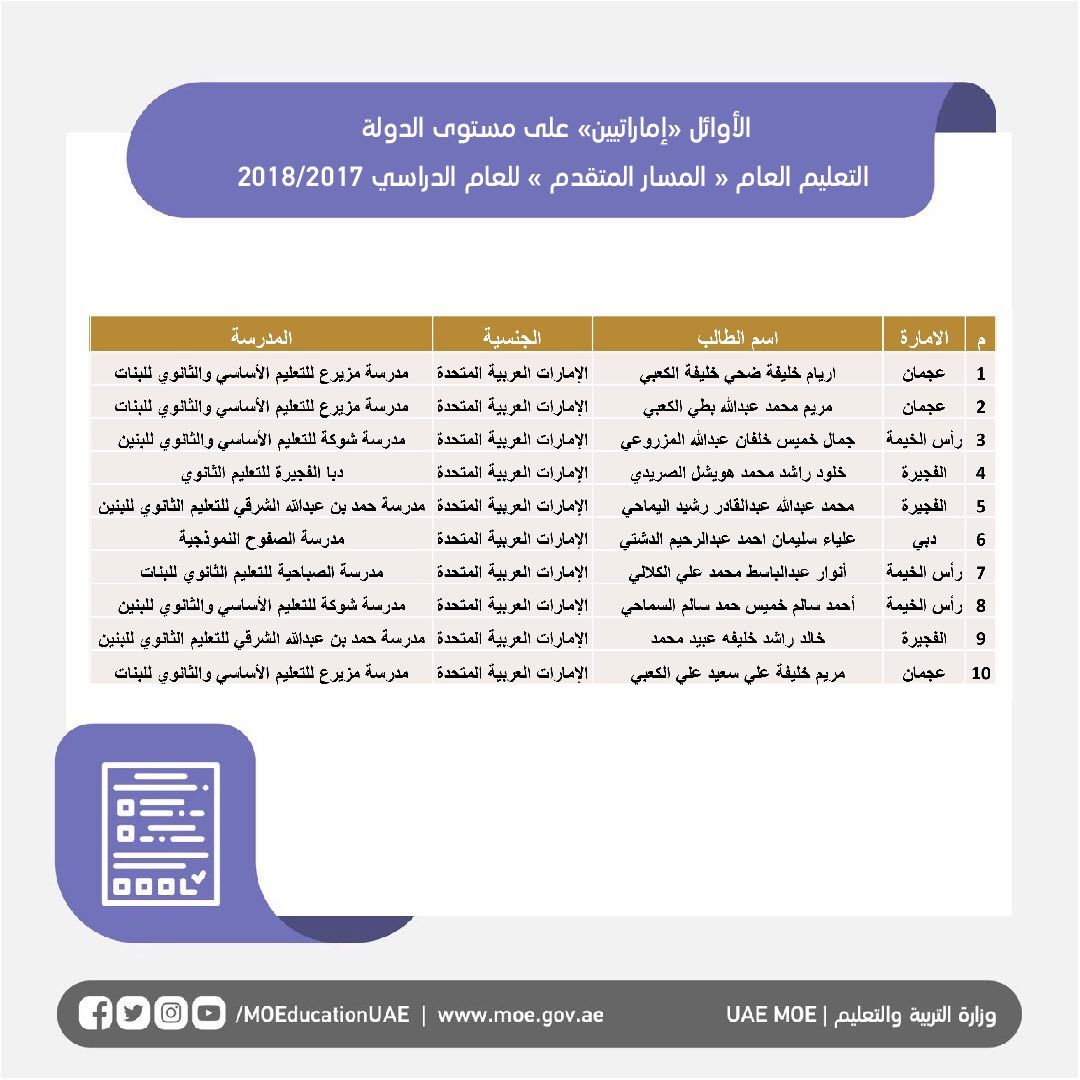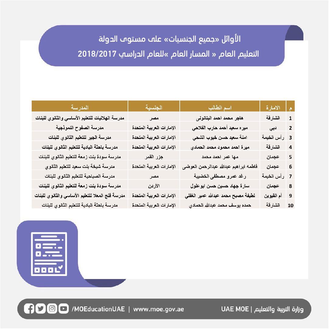 تفاصيل الخبر: أسماء الأوائل على الدولة للعام الدراسي 2017-2018 | ||