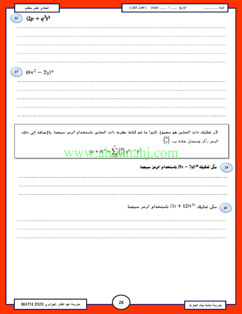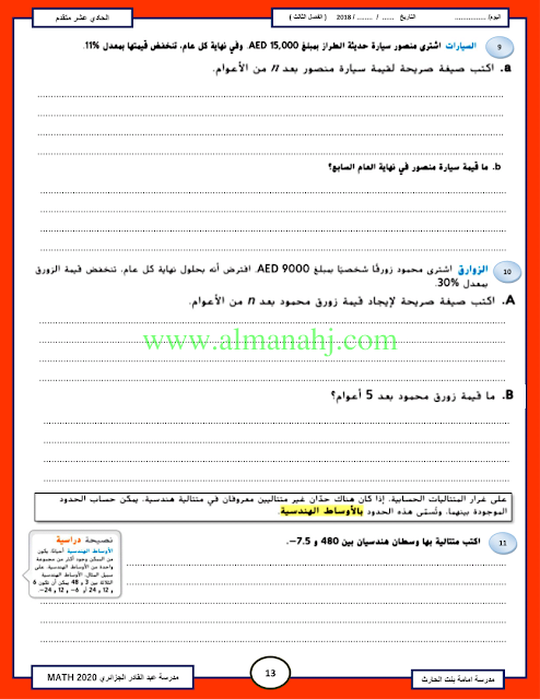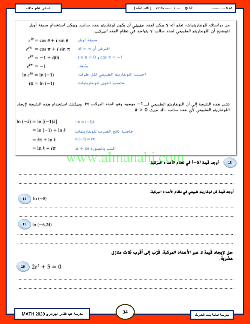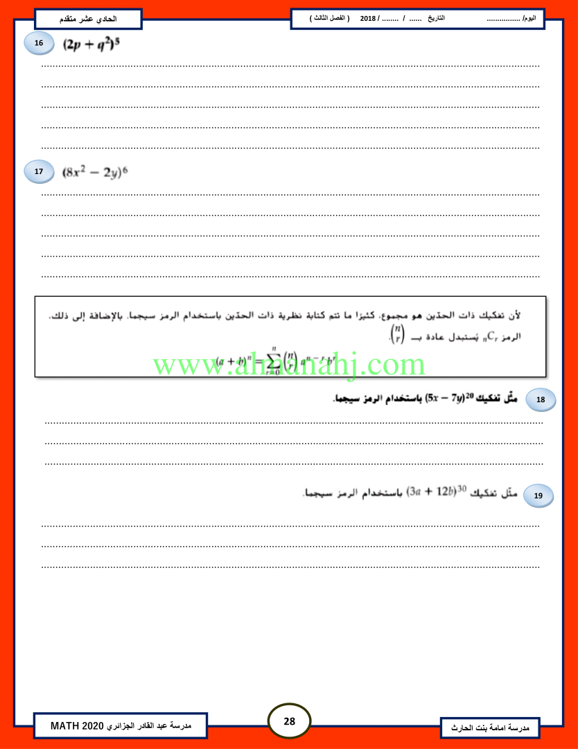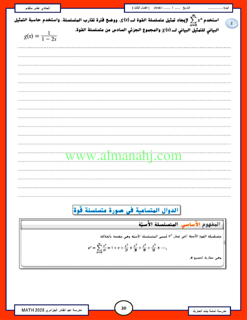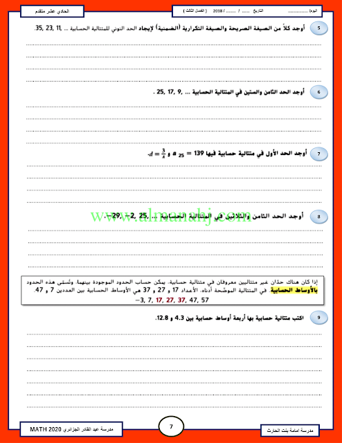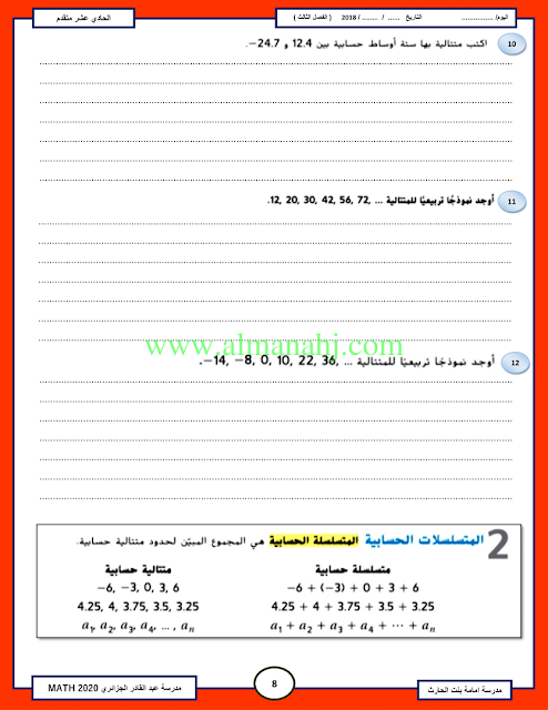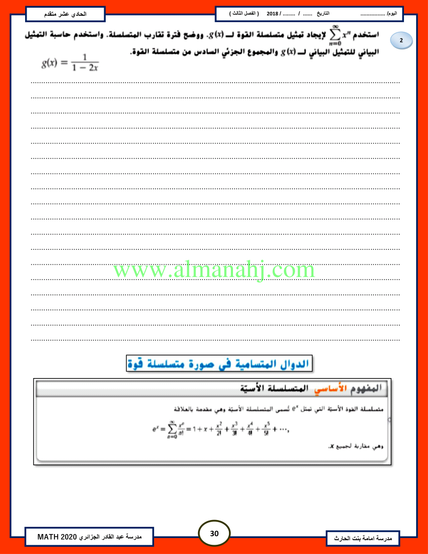 معلومات الملف: الصف الحادي عشر المتقدم, الفصل الثالث, رياضيات, 2017-2018, المتتاليات والمتسلسلات | |||