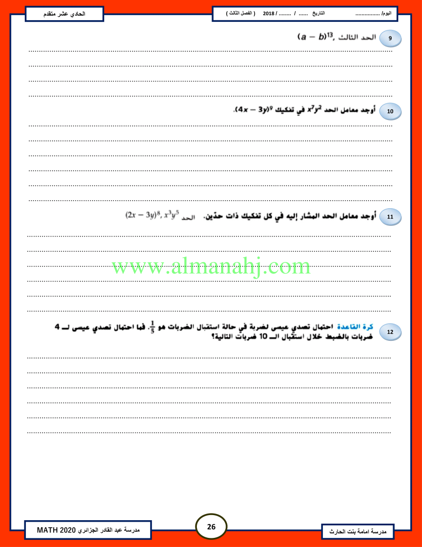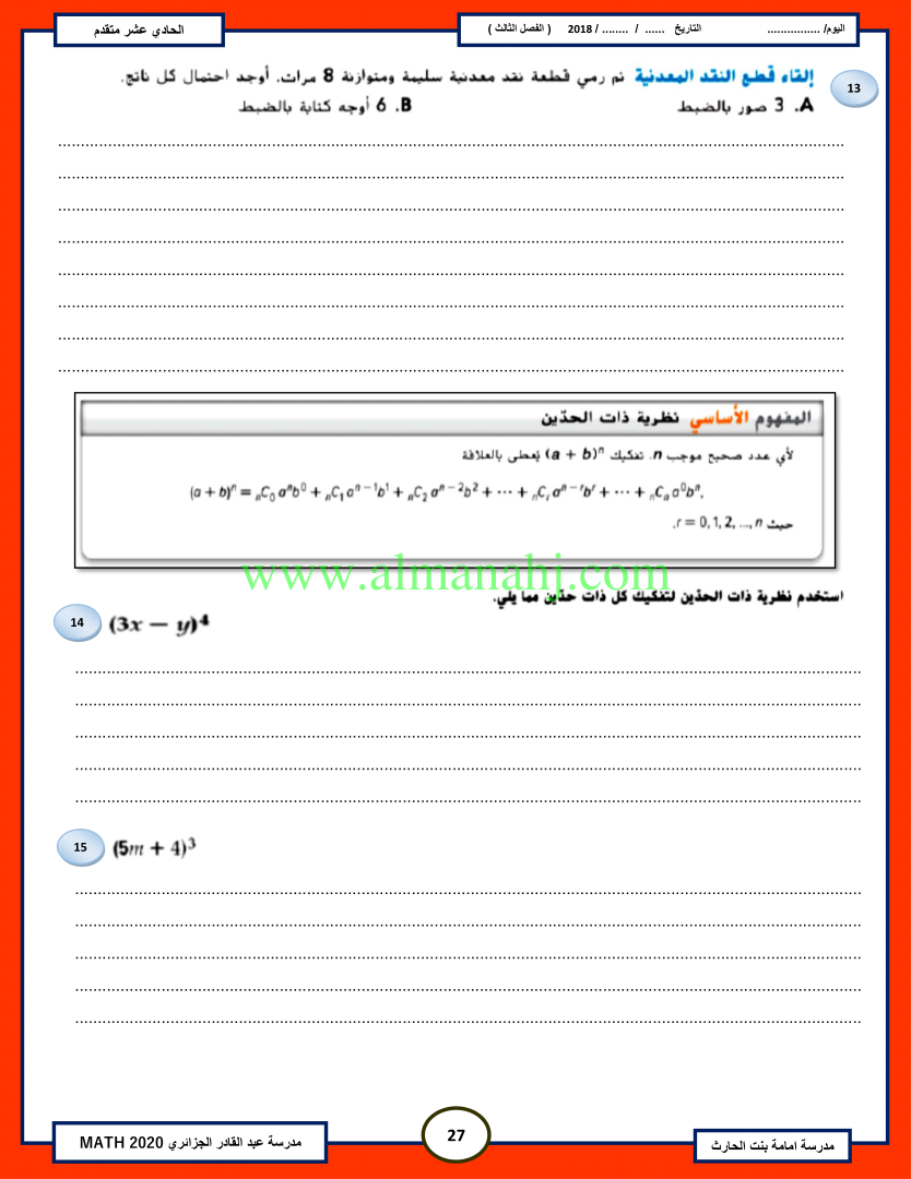 هل تريد ملفات لمادة أخرى لقسم الصف الحادي عشر المتقدم, الفصل الثالث ؟ اخترها |