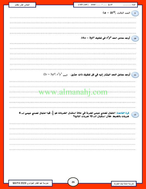 📌 تنويه: موقع المناهج لا ينشر أي إعلان أو روابط تخص منصة ألف، وعليه نرجو منكم الخروج من المجموعات التي تضع شعار الموقع والتي تقوم بالترويج لحلول منصة ألف | |