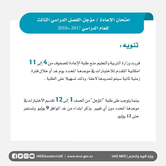 تنويه هام تقرره وزارة التربية والتعليم | ||
