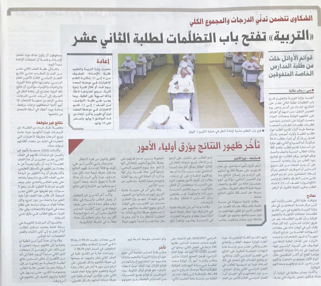 تفاصيل الخبر: فتح باب التظلمات للصف الثاني عشر حتى يوم الخميس | ||