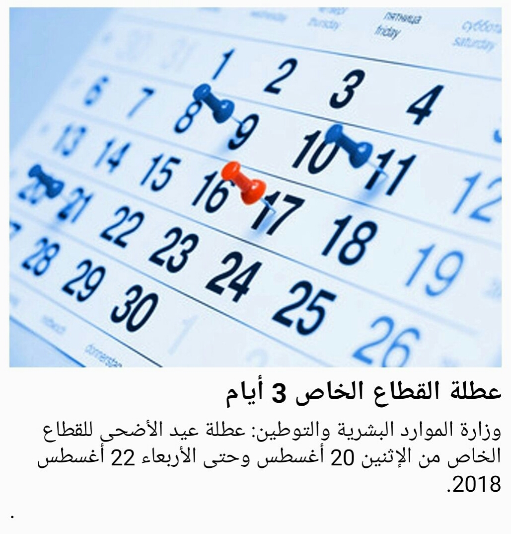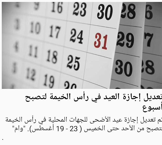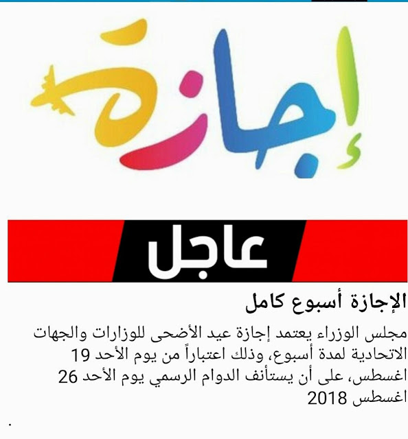تفاصيل الخبر: مجلس الوزراء يعتمد إجازة عيد الأضحى للوزارت والجهات الاتحادية لمدة أسبوع | ||