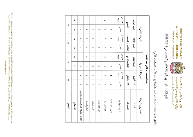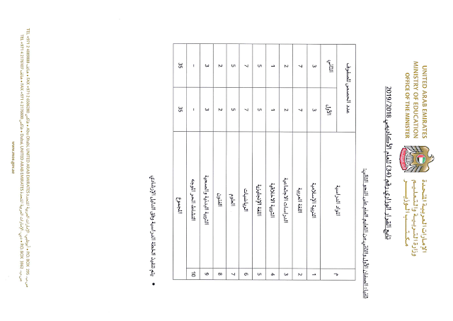 تفاصيل الخبر: عدد الحصص الدراسية لجميع المواد وجميع الصفوف وفق القرار الوزاري رقم 34 للعام الدراسي 2018-2019 | |||