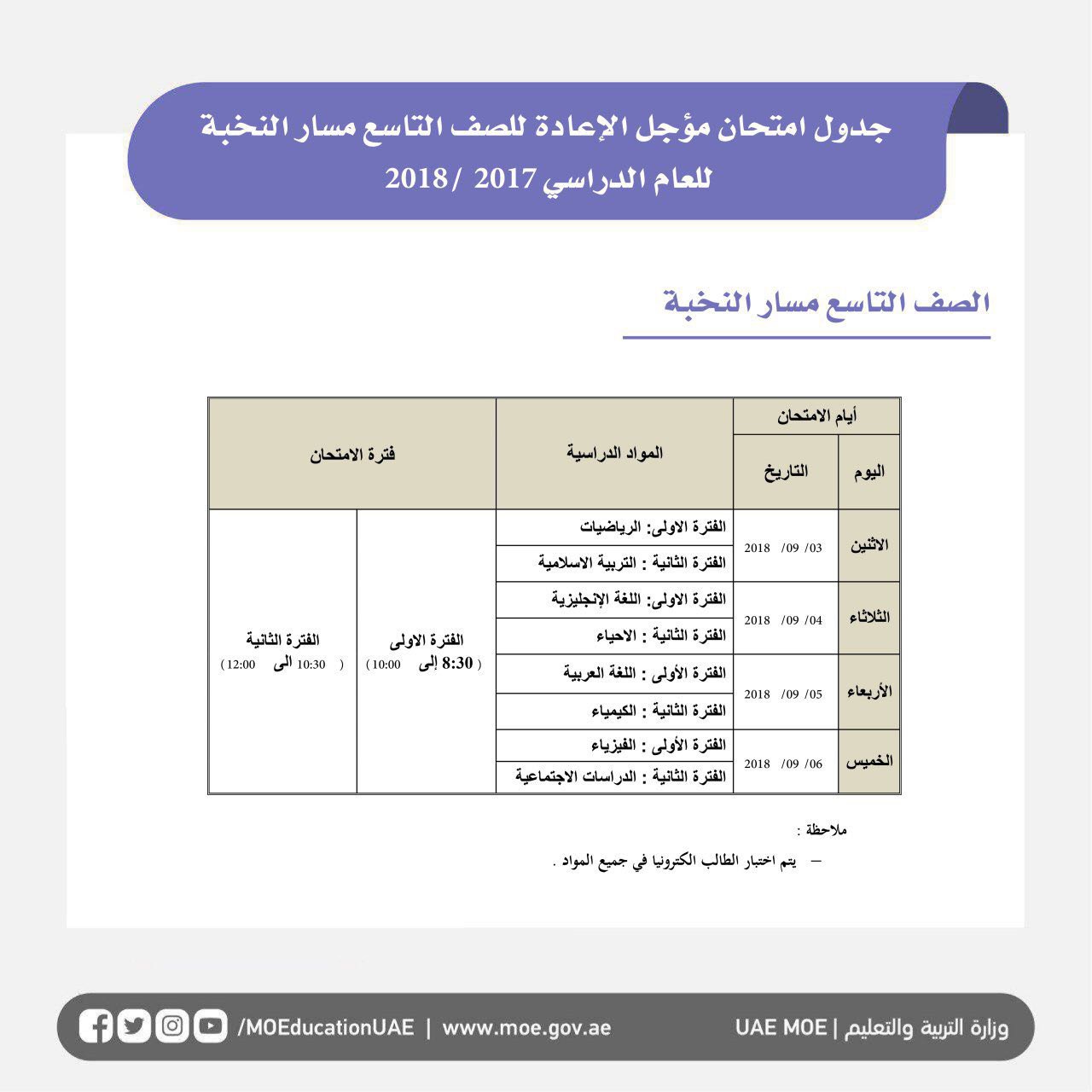معلومات الملف: جدول امتحان مؤجل الإعادة للصف التاسع العام والنخبة | ||