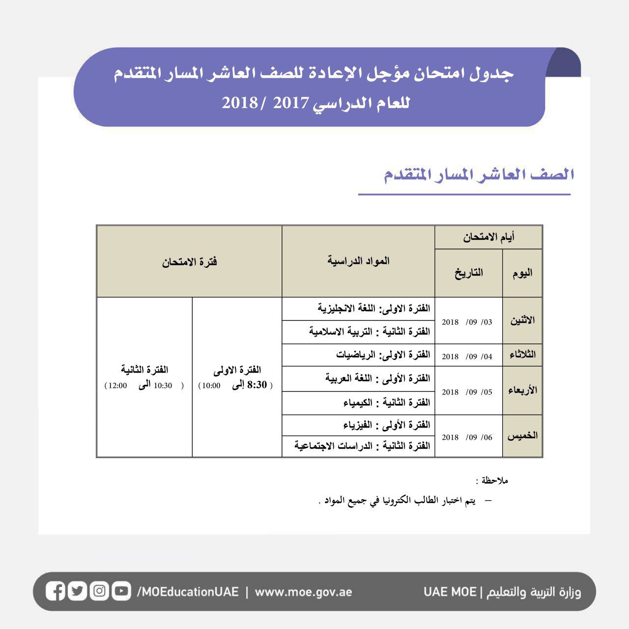 جدول امتحان مؤجل الإعادة للصف العاشر العام والمتقدم | ||