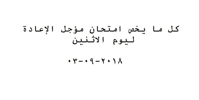 كل ما يخص امتحان مؤجل الإعادة ليوم الاثنين 03092018 | ||
