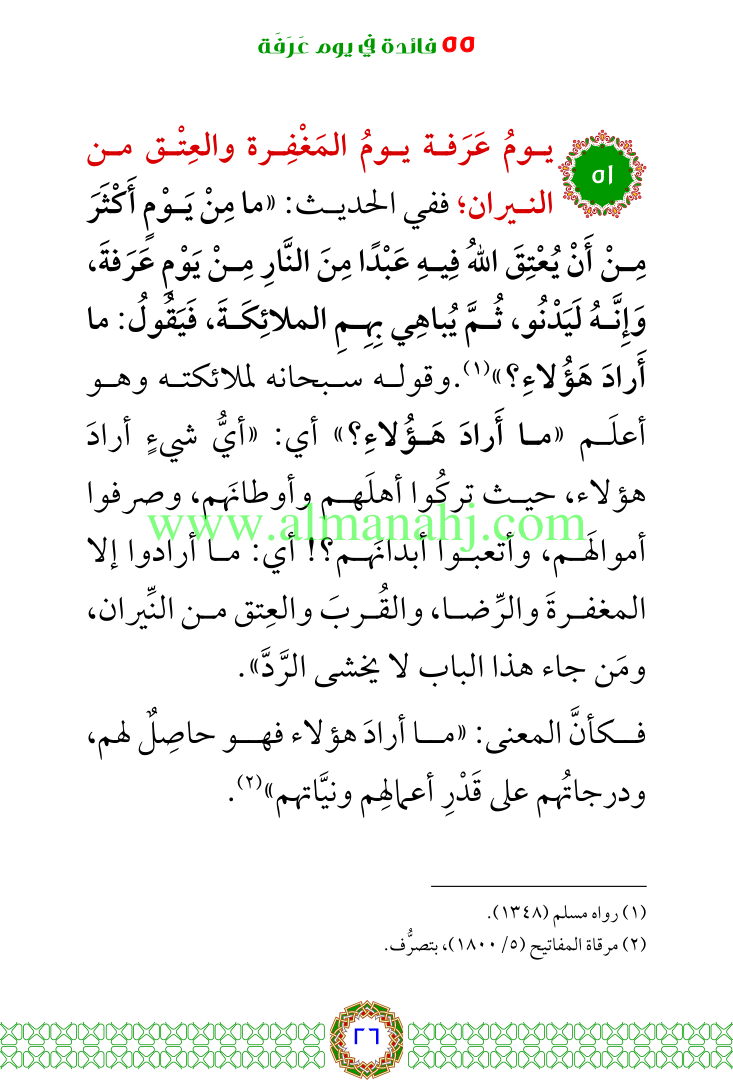 تفاصيل الخبر: فائدة يوم عرفة | |||