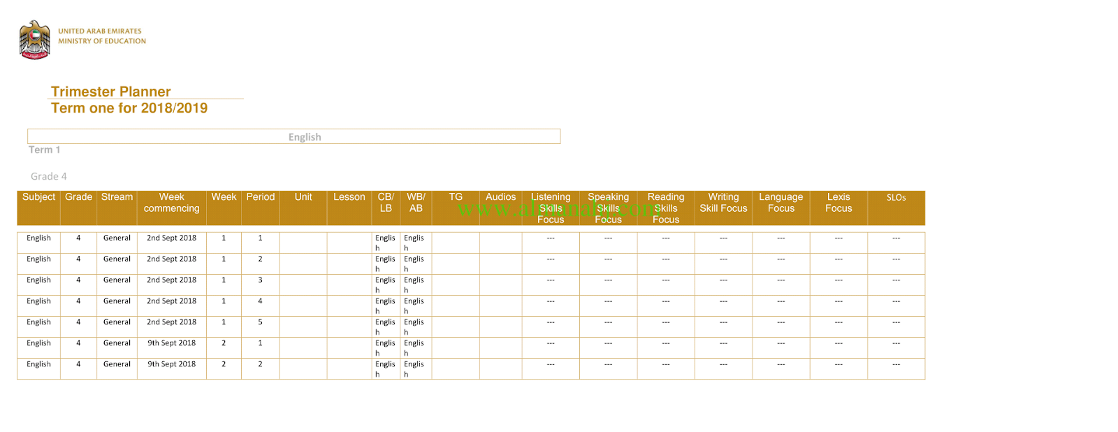تفاصيل الخبر: الصف الرابع, الفصل الأول, 2018-2019, التوزيع الزمني للخطة الفصلية | |||