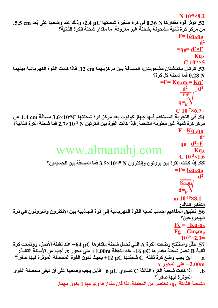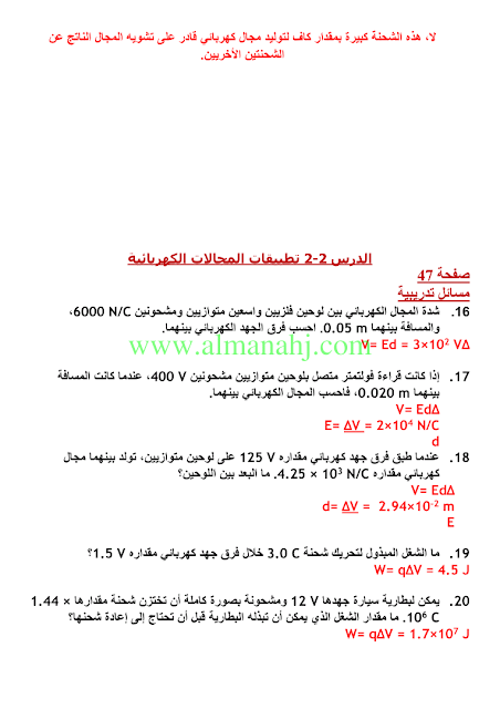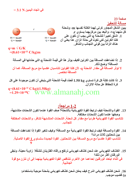 معلومات الملف: الصف الثاني عشر المتقدم, الفصل الأول, فيزياء, 2018-2019, حل اسئلة الفيزياء | |||