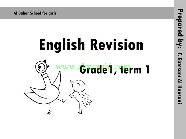 معلومات الملف: الصف الأول, الفصل الأول, لغة انكليزية, 2018-2019, اوراق مراجعة نهاية الفصل الاول | |||