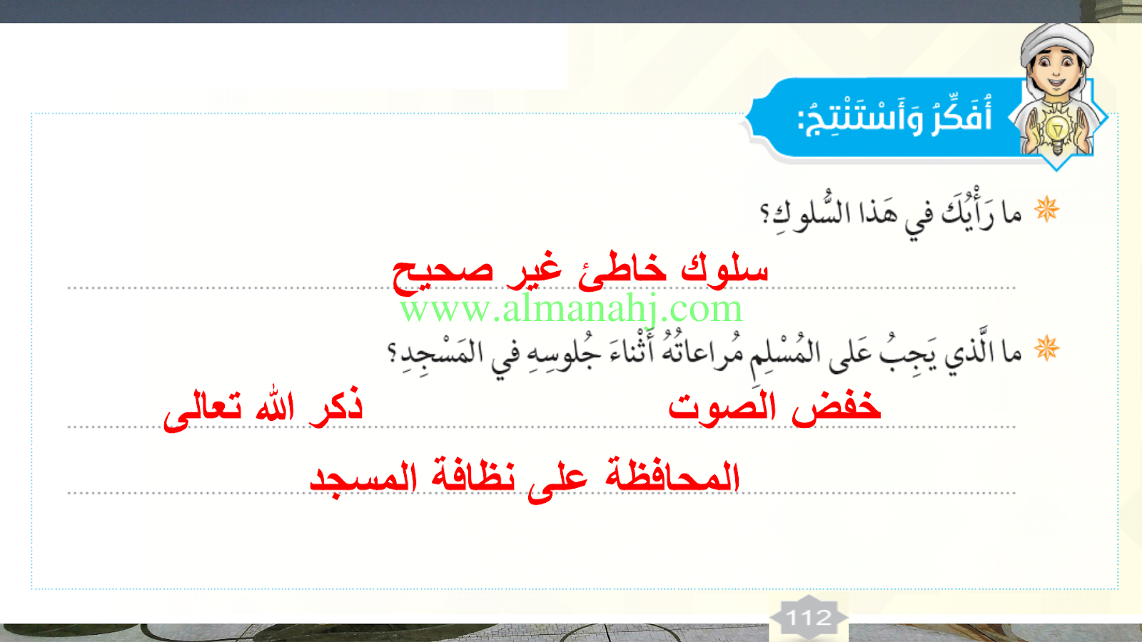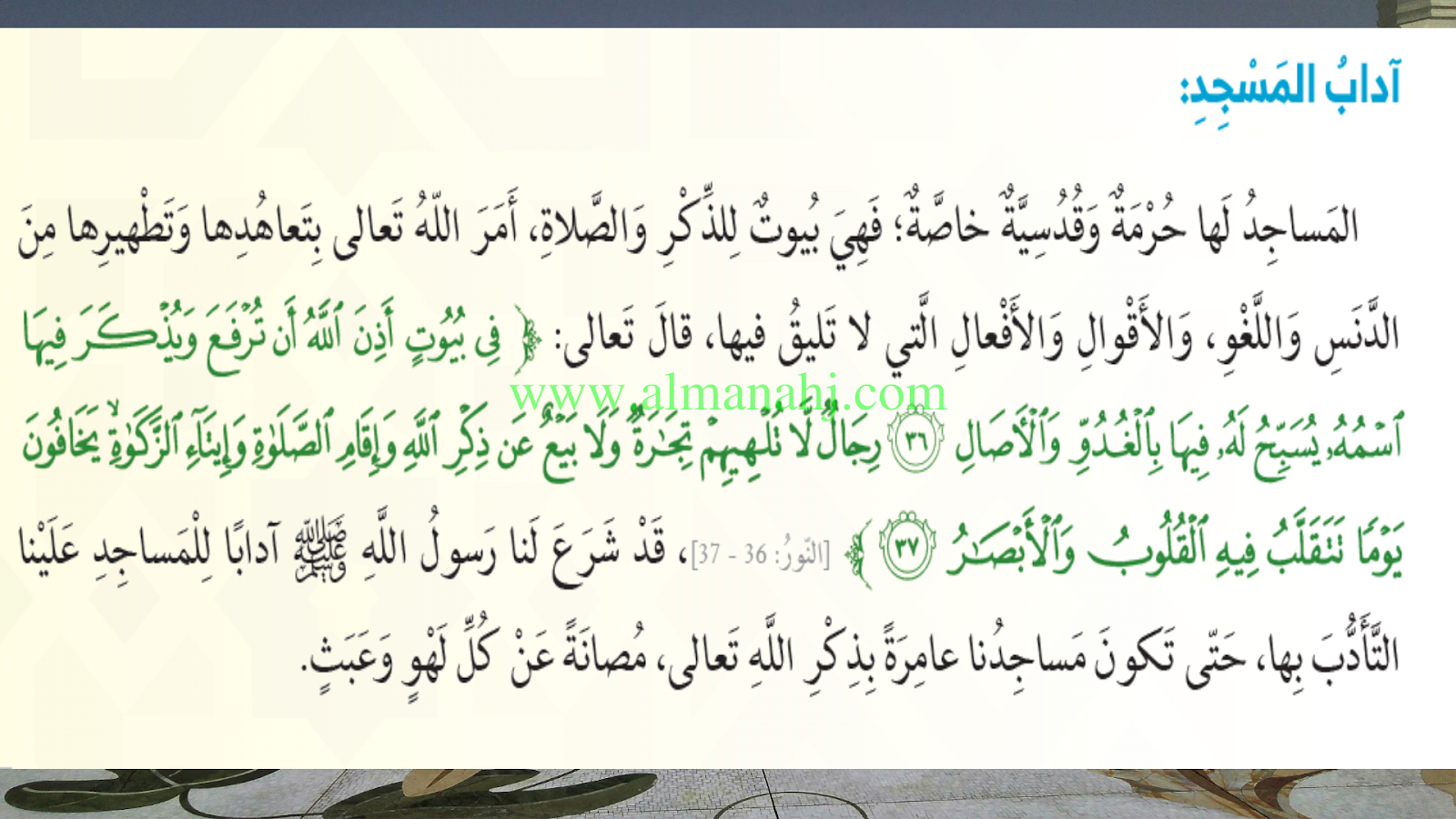 معلومات الملف: الصف السادس, الفصل الأول, تربية اسلامية, 2018-2019, اداب المسجد | |||