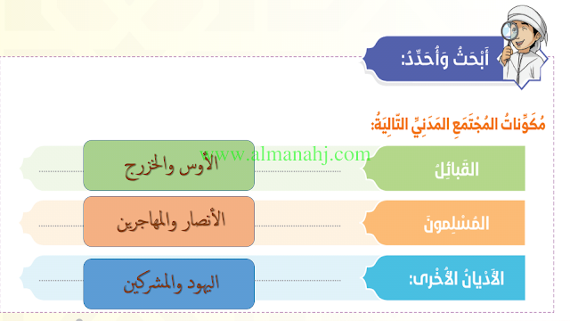 معلومات الملف: الصف السادس, الفصل الأول, تربية اسلامية, 2018-2019, الحياة في المدينة المنوة | |||