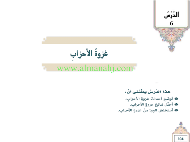 معلومات الملف: الصف السادس, الفصل الأول, تربية اسلامية, 2018-2019, غزوة الاحزاب | |||