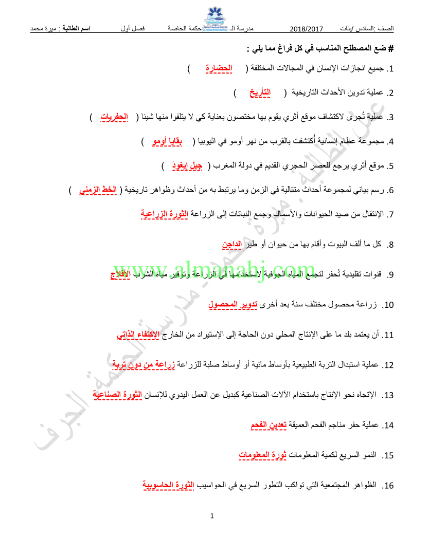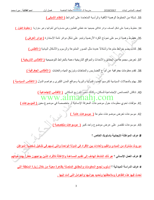 معلومات الملف: الصف السادس, الفصل الأول, اجتماعيات, 2018-2019, تعريفات | |||