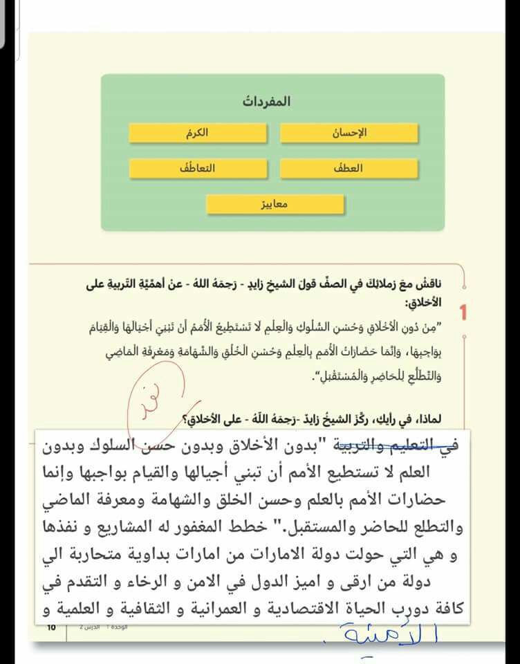 الملاحظات المثبتة في المناهج الإماراتية | |