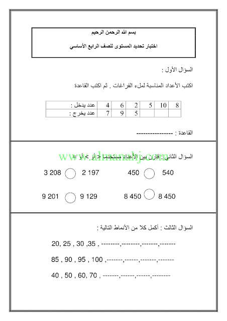 معلومات الملف: الصف الرابع, الفصل الأول, رياضيات, 2018-2019, اختبار تشخيصي تحديد مستوى | |||
