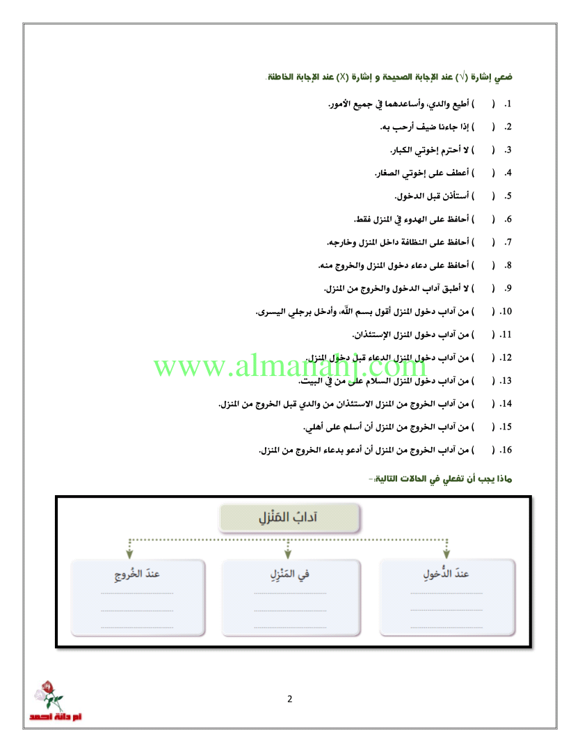 | اضغط هنا لتحميل وعرض ( ورقة عمل اداب المنزل ) | |||