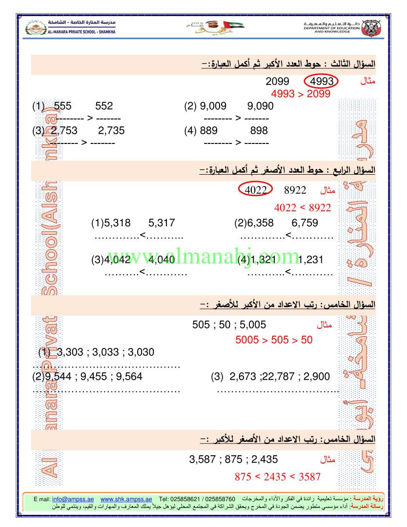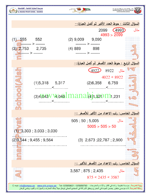 اوراق عمل حول ترتيب الاعداد ومكان وقيمة العدد/ مراجعة شاملة للوحدة الاولى/ | |||