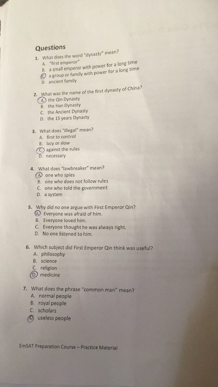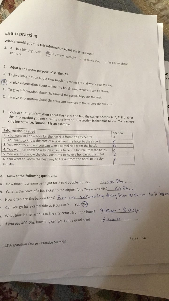 8. الصف الرابع, لغة انجليزية, أسئلة اختبار تدريبي وفق الهيكل الوزاري الجديد