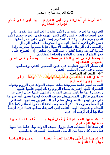 معلومات الملف: الصف الثاني عشر، الفصل الأول, لغة عربية, 2018-2019, على قدر اهل العزم تأتي العزائم | |||