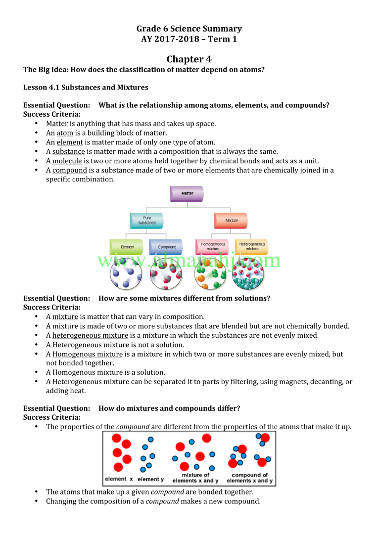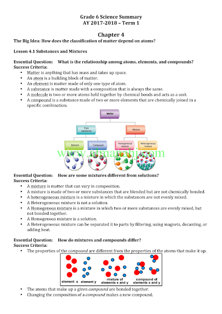 الصف السادس, الفصل الأول, ساينس, 2018-2019, ملخص مكون من ورقتي عمل رقم 2
