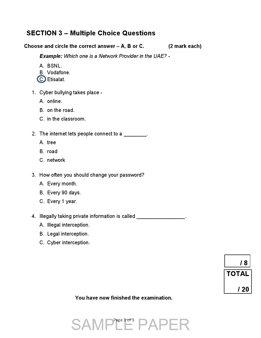 | حاسوب نموذج اختبار تدريبي | ||