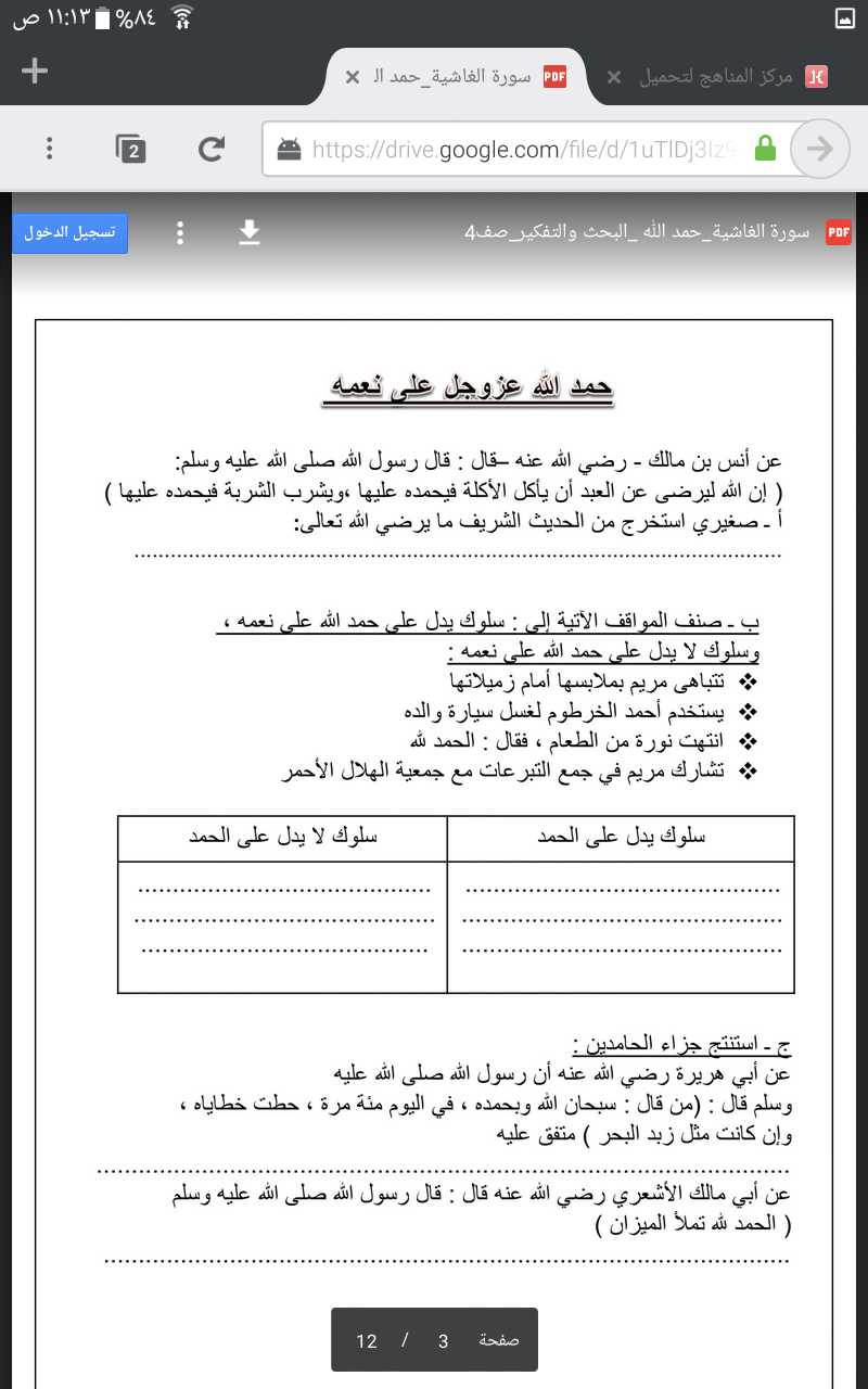 معلومات الملف: الصف الرابع, الفصل الثاني, تربية اسلامية, 2018-2019, اوراق عمل سورة الغاشية ـ حمد الله على نعمه ـ التفكير العلمي | ||