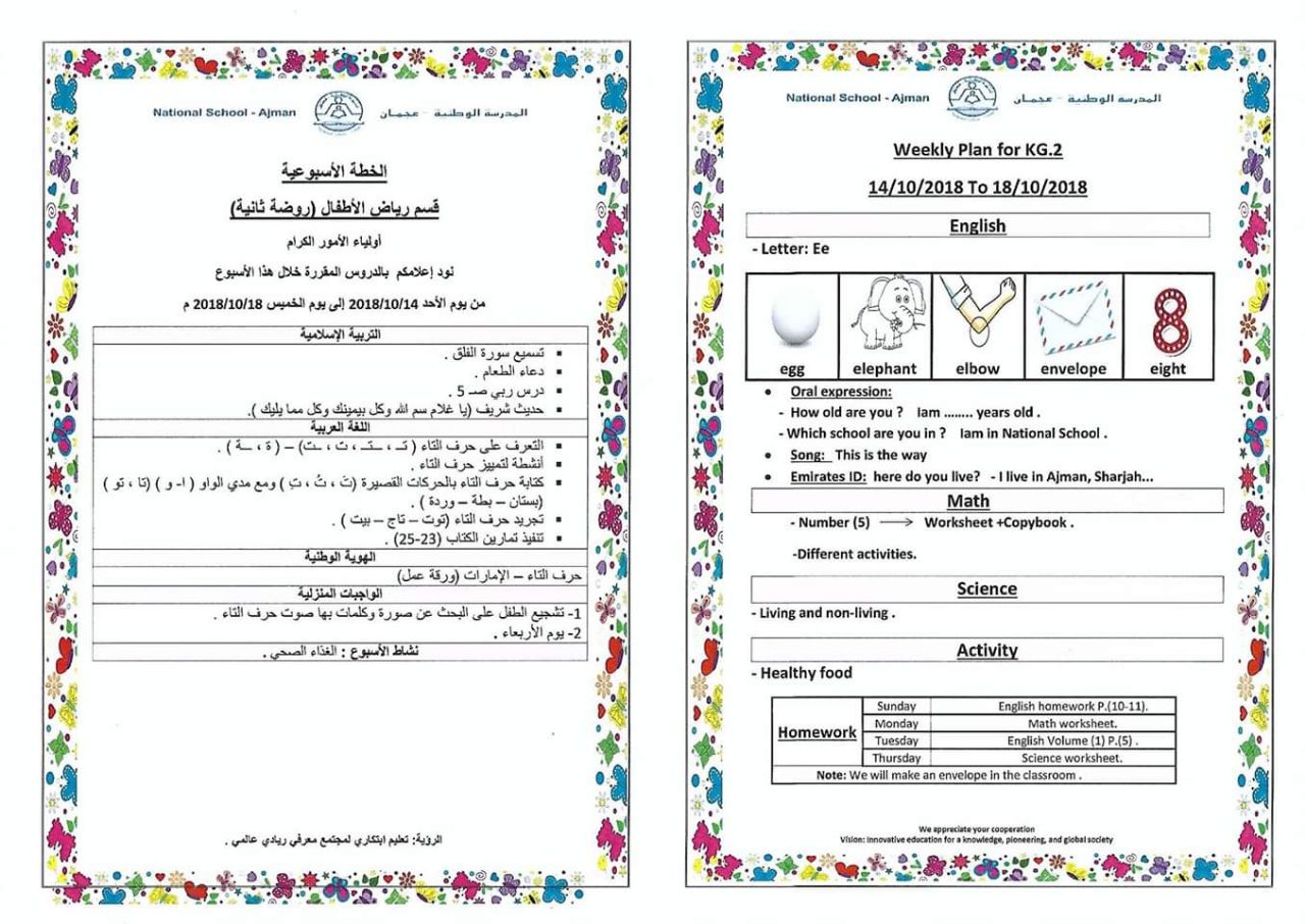 تفاصيل الخبر: رياض الاطفال, الفصل الأول, 2018-2019, الخطة الاسبوعية من 14 الى 18/10/2018 | ||