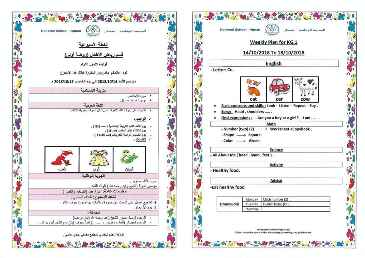 | رياض الاطفال الخطة الاسبوعية من 14 الى 18/10/2018 | ||