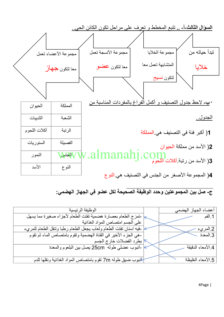 اسئلة تدريبية مع حل درس ممالك الحياة | |||