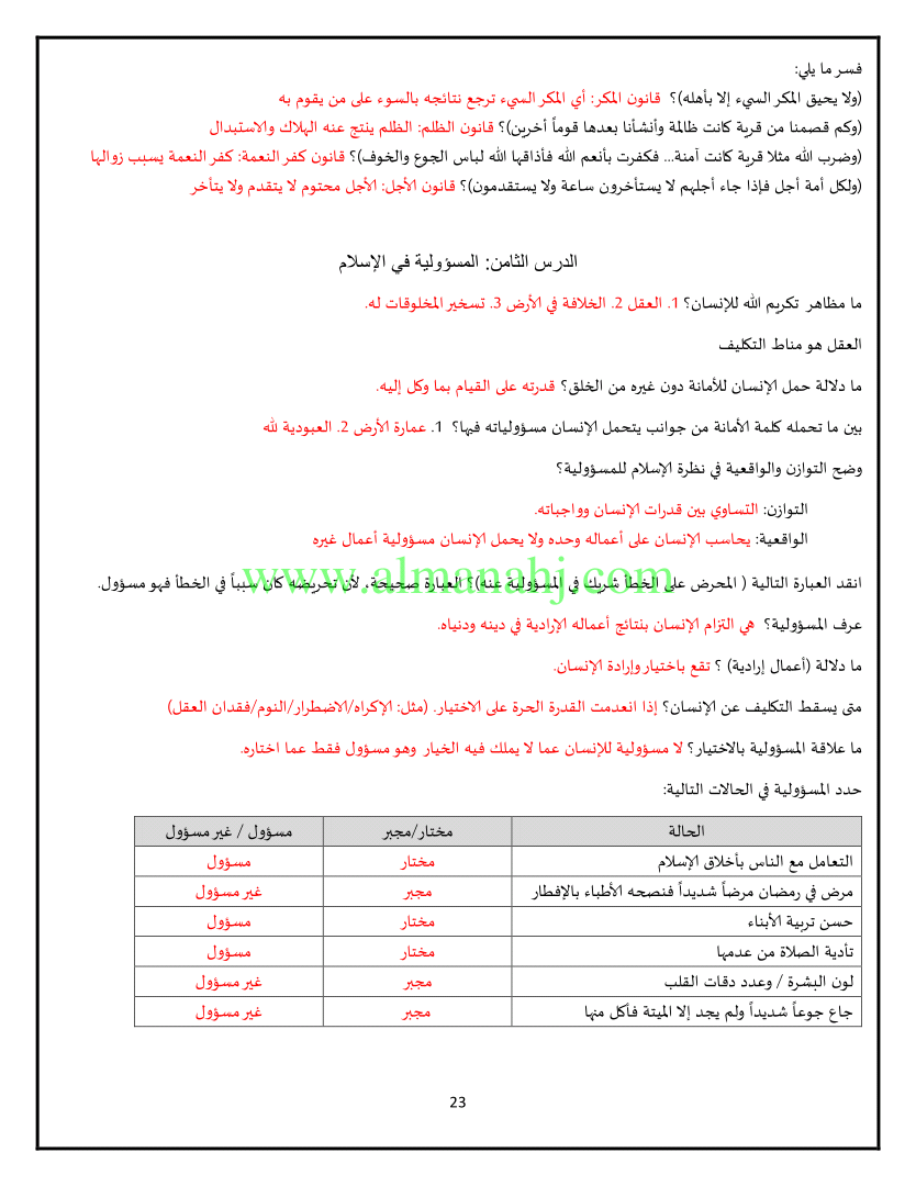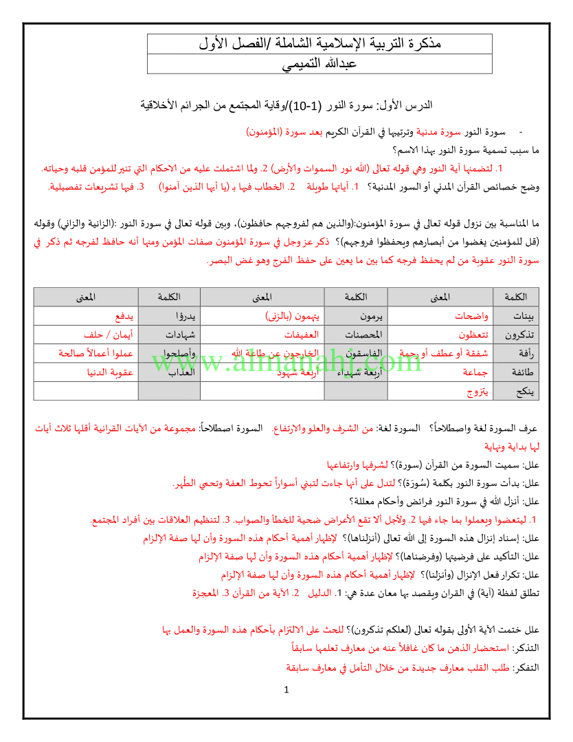 اضغط هنا لتحميل وعرض ( مذكرة تربية اسلامية ) |