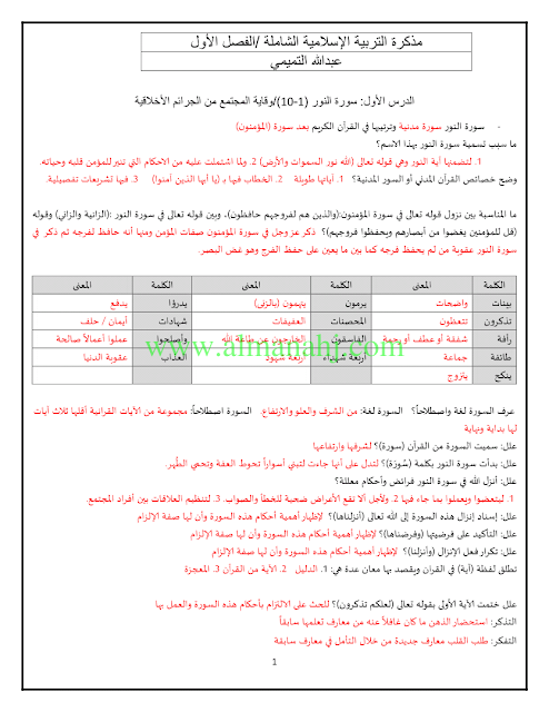 رابط تحميل وعرض ( مذكرة تربية اسلامية ) | |||
