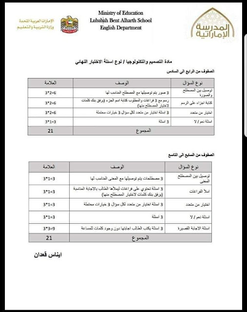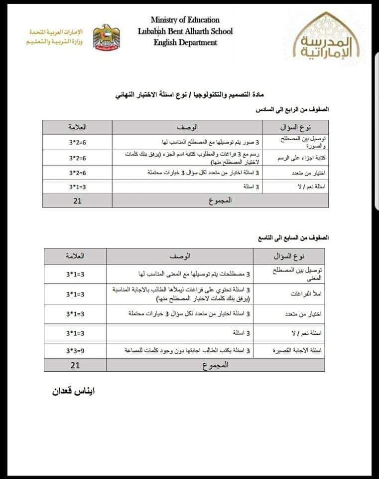 | نوعية وطريقة اسئلة الامتحان النهائي الوزاري لمادة التصميم والتكنولوجيا | ||