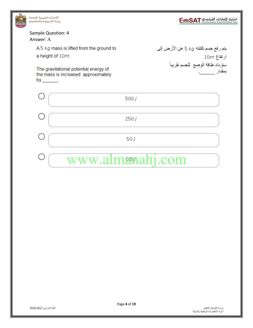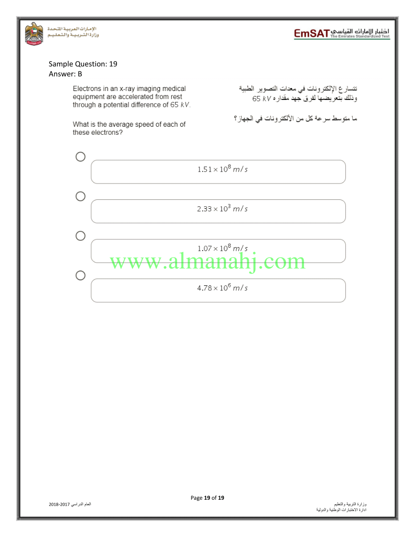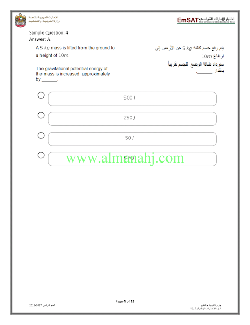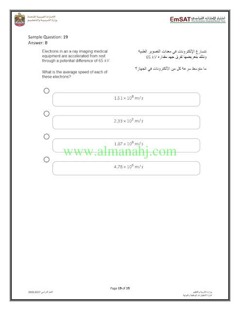 معلومات الملف: الصف الثاني عشر العام, الفصل الأول, فيزياء, 2018-2019, امسات, عينات من اسئلة اختبار قياسي الامسات | |||