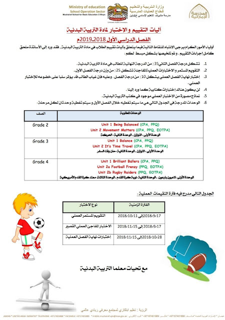 تفاصيل الخبر: لا وجود لاختبار وزاري لمادة التربية البدنية بحسب آليات التقيم و الاختبار2018-2019 | ||