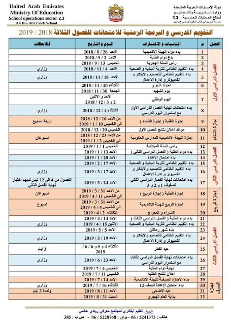 التقويم المدرسي والبرمحة الزمنية لامتحانات الفصول الثلاثة | ||