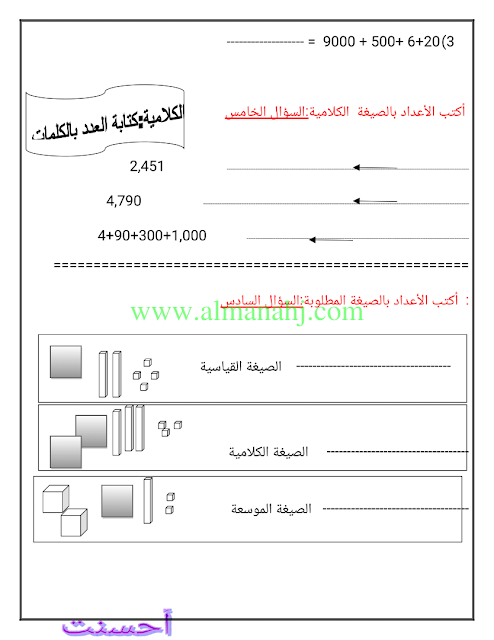 رابط تحميل وعرض ( القيمة المكانية حتى منزلة الالاف ) | |||