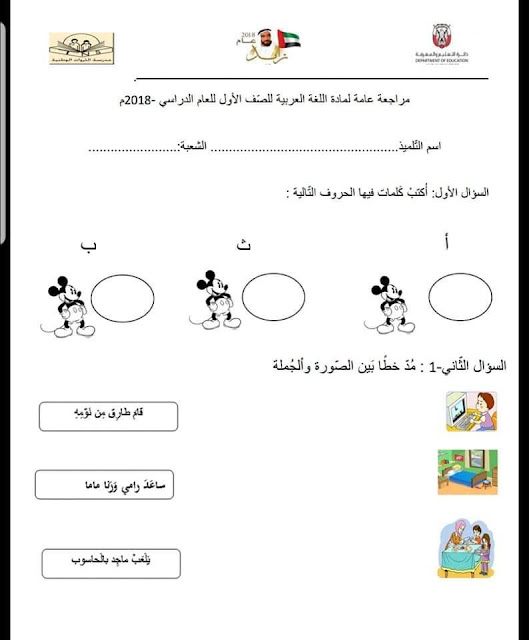 معلومات الملف: الصف الأول, الفصل الأول, لغة عربية, 2018-2019, مراجعة عامة في مادةالغة العربية 2018 عدد اوراقها 2 ورقة | ||