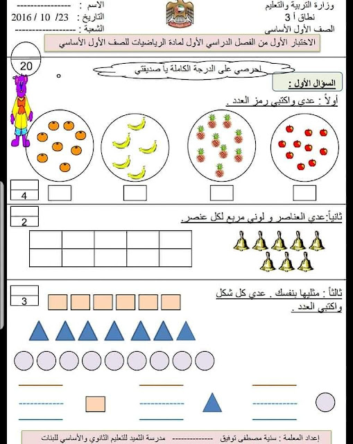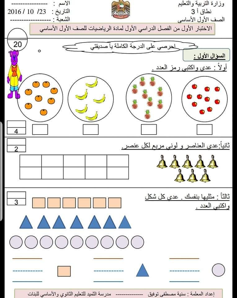 | أنت هنا: موقع المناهج ⇦ المناهج الإماراتية ⇦ الصف الأول ⇦ رياضيات ⇦ الفصل الأول ⇦ اختبارات |