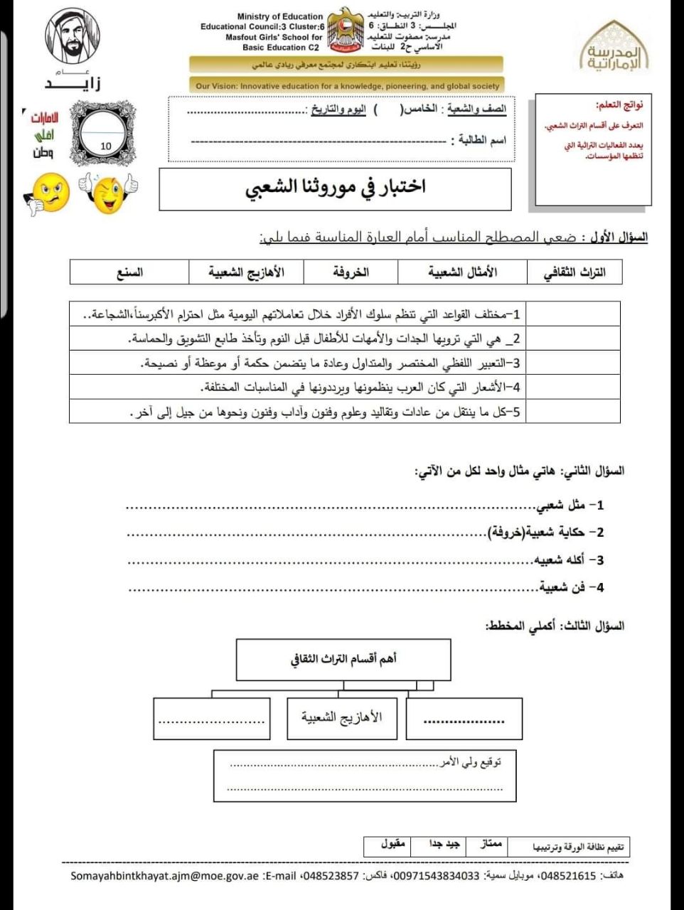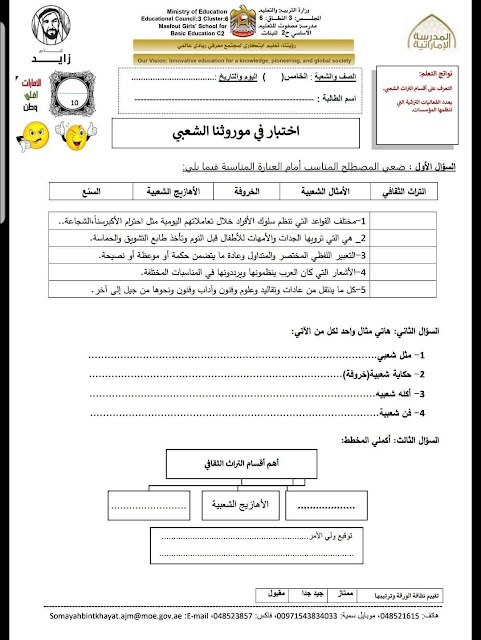 معلومات الملف: الصف الخامس, الفصل الأول, اجتماعيات, 2018-2019, اختبار في موروثنا الشعبي | ||