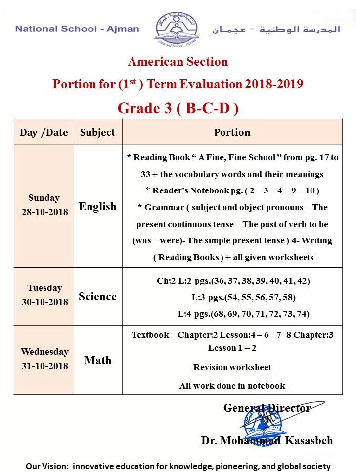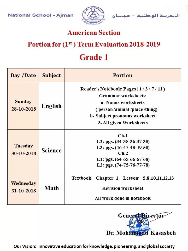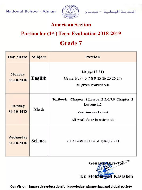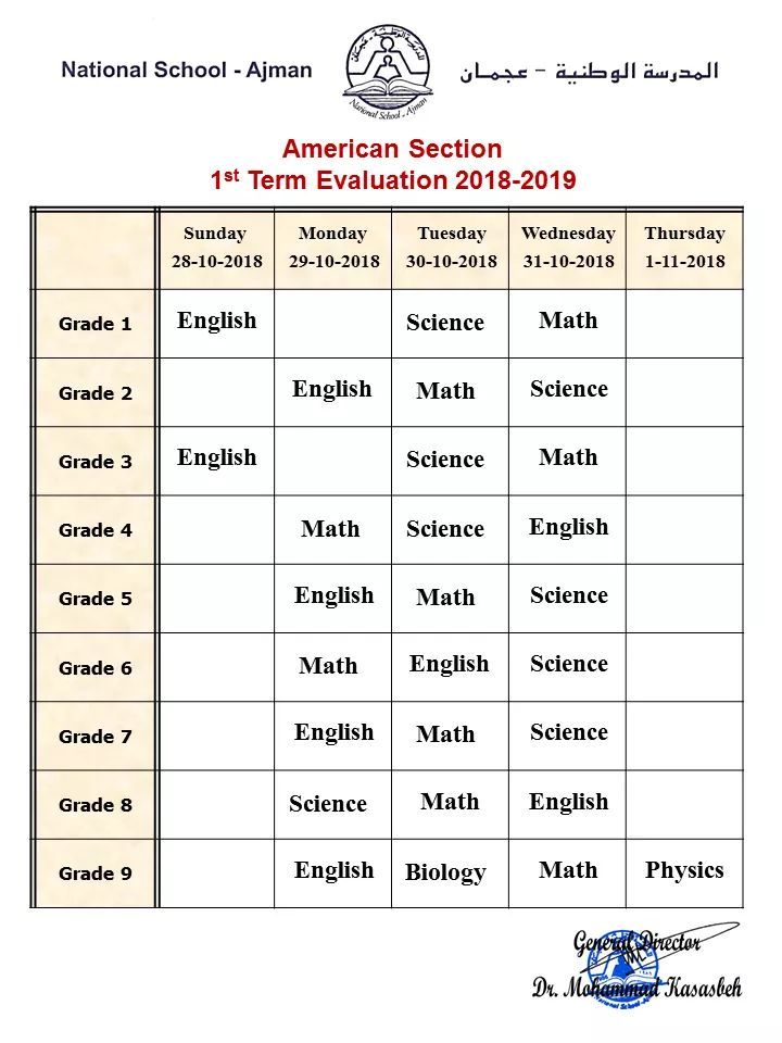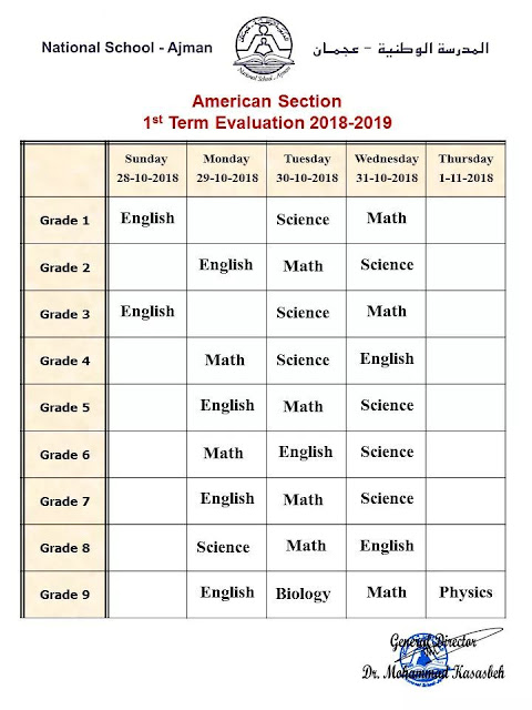 المدرسة الوطنية بعجمان: American Section 1st Term Evaluation