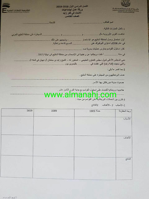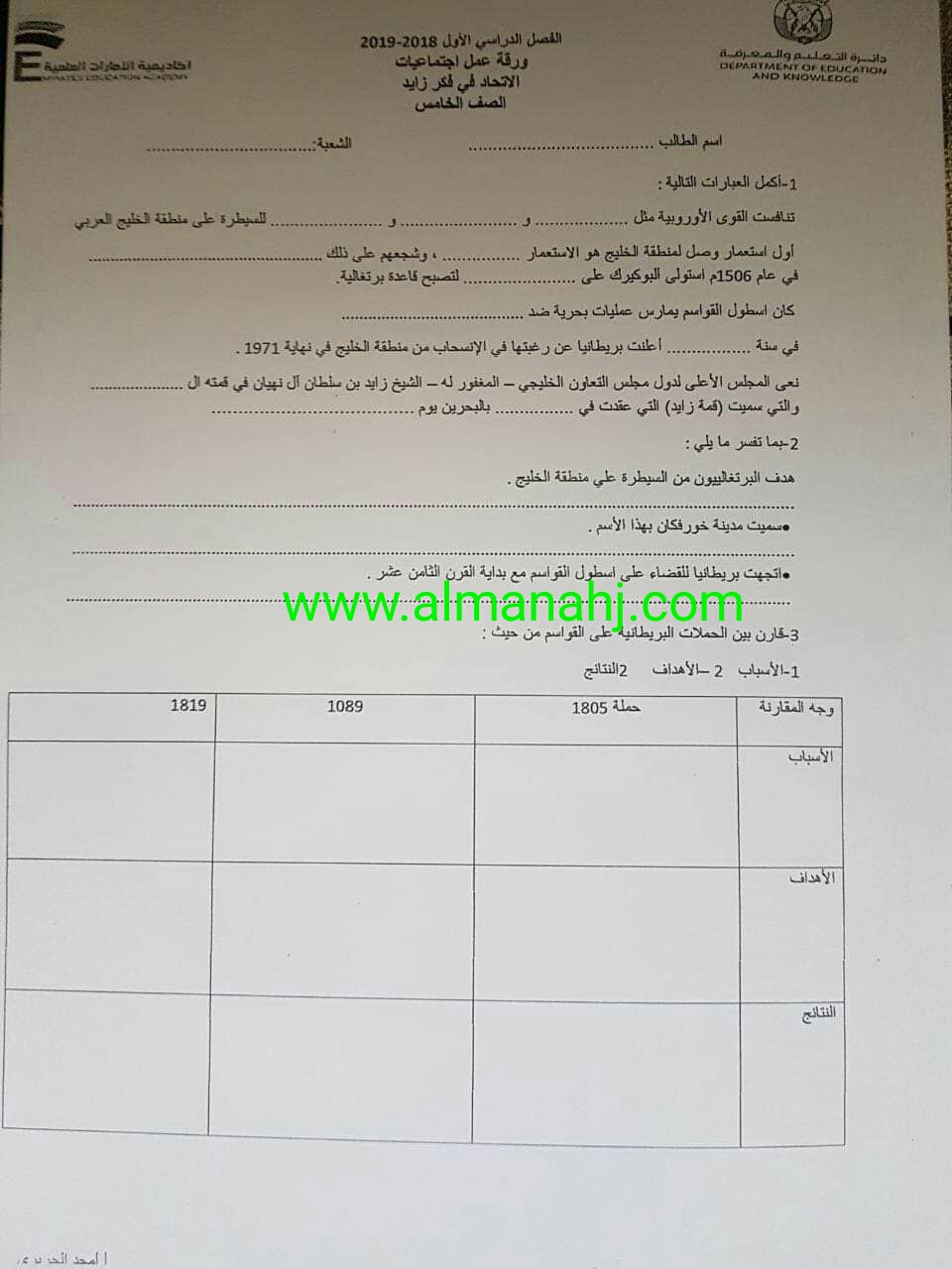 معلومات الملف: الصف الخامس, الفصل الأول, اجتماعيات, 2018-2019, ورقة عمل ثانية الاتحاد في فكر زايد | ||