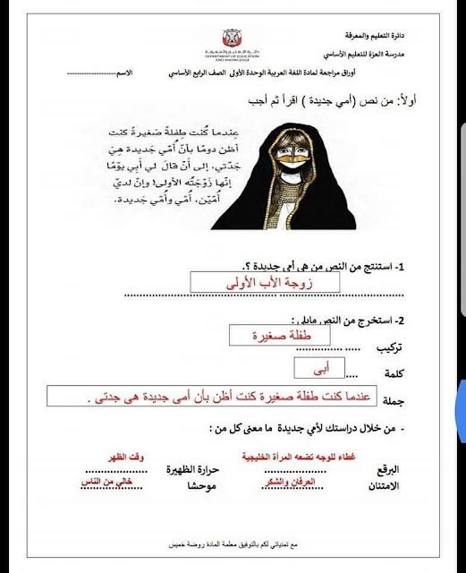 اوراق مراجعة للغة العربية الوحدة الاولى ـ مراجعة مهمة مكونة من 3 ورقات | ||