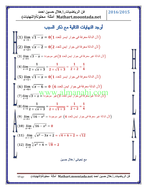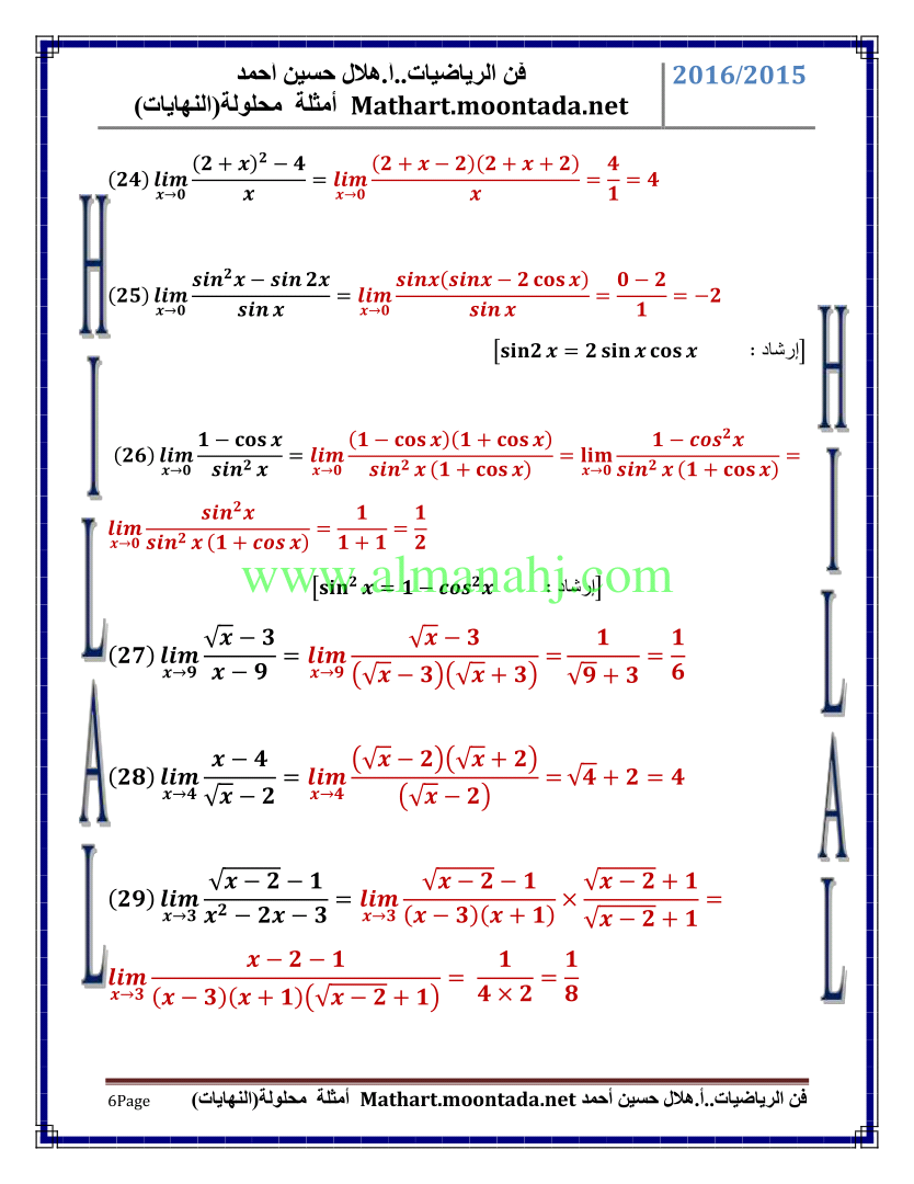 | اضغط هنا لتحميل وعرض ( امثلة محلولة على النهايات ) | |||