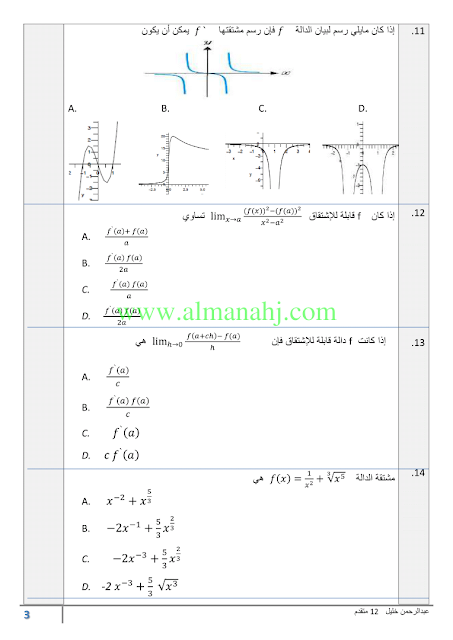 معلومات الملف: الصف الثاني عشر المتقدم, الفصل الأول, رياضيات, 2018-2019, ملزمة الوحدة الثالثة | |||