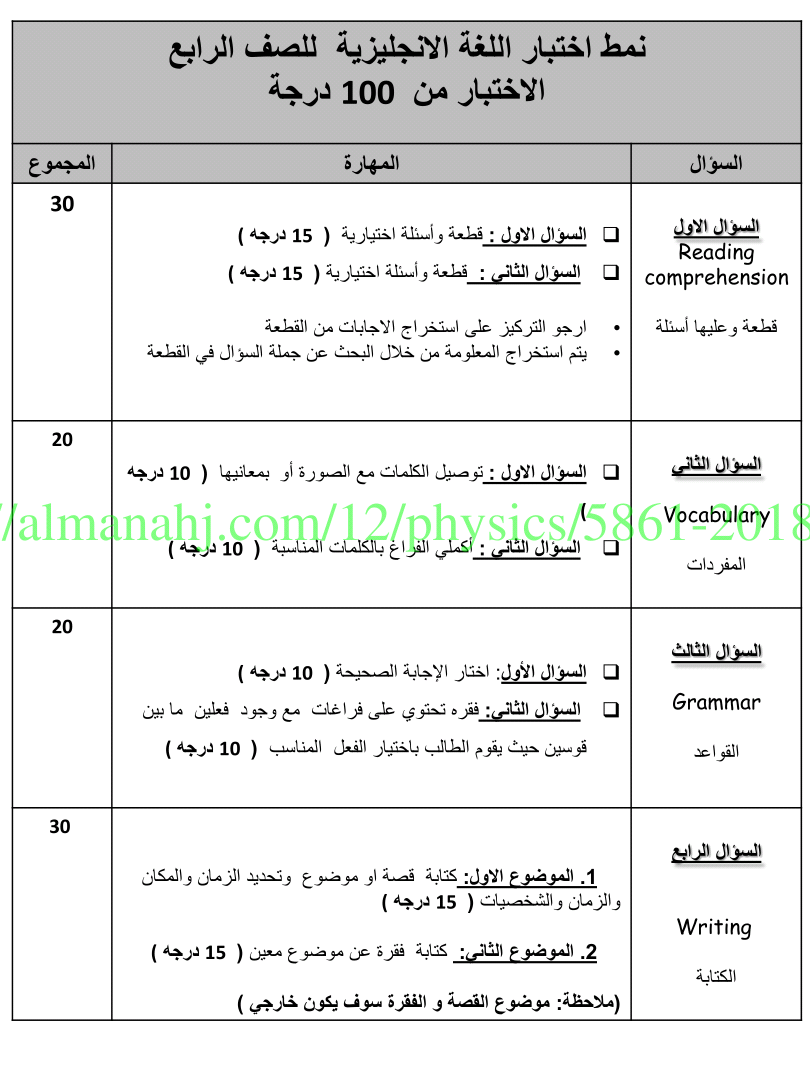 جميع الاختبارات التشخيصية المتوفرة في جميع المواد ولجميع الصفوف | |